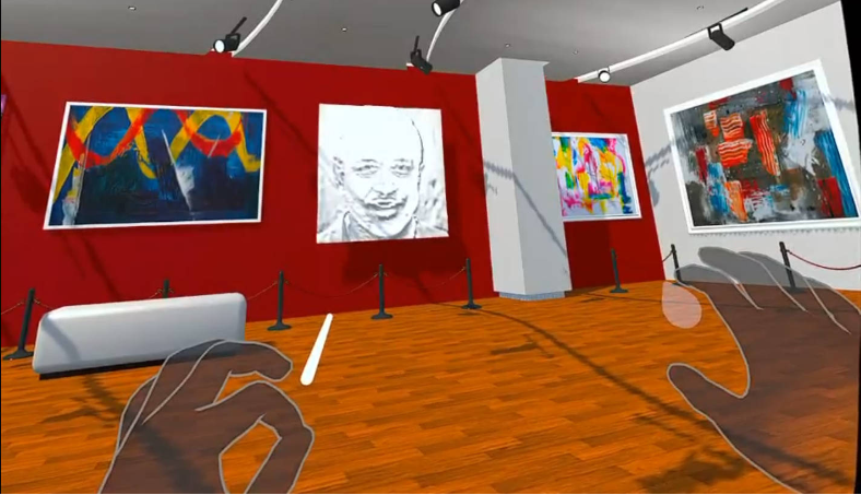We present an interactive virtual reality (VR) art gallerythat integrates a generative adversarial network (GAN) vi-sual synthesizer with immersive gesture-based user interac-tion. Building on Autolume, a no-code GAN platform forartists, our system brings artificial intelligence (AI)-generatedimagery into a Unity-driven VR environment in real time. Weintroduce a Python bridge that converts each AI-generatedimage into a 3D heightmap, allowing the visuals to becomesculptural elements in the gallery space. Users can influencethe content and form of the gallery through intuitive VR ges-tures, effectively co-creating art in specific places. Specifi-cally, users use one hand to select frames and the other tomanipulate images: horizontal hand movements change theGAN’s seed, vertical movements adjust diversity parametersfor subtle variations, and forward-backward motions togglebetween 2D imagery and 3D sculptural forms. This paperdetails the design and technical architecture of the system,situates it in the context of related work in VR art and cre-ative AI, and discusses findings from preliminary user inter-actions. Our results demonstrate a novel immersive experi-ence in which the audience transitions from passive viewer toactive participant, highlighting creative and technical impli-cations for the future of AI art in virtual environments.